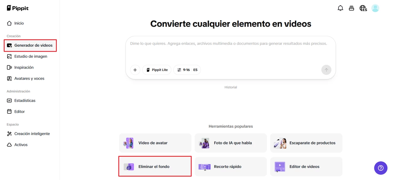 Para comenzar, los usuarios solo necesitan iniciar sesión en Pippit y probarlo gratis. Luego pueden dirigirse a la sección "Generador de videos" y buscar "Eliminar el fondo" en la sección de herramientas populares. Esta herramienta está diseñada para ofrecer a los usuarios un inicio rápido y fluido en su proceso de eliminación de fondo.