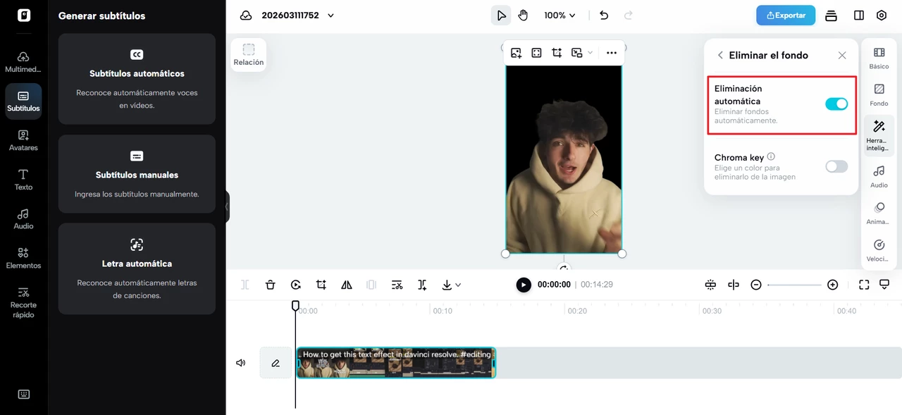 Los sistemas de edición con IA utilizan su capacidad para analizar cada uno de los fotogramas del video y detectar automáticamente el sujeto principal. Esto ayuda a que los sistemas de edición con IA separen al sujeto principal del fondo sin configuraciones complicadas.