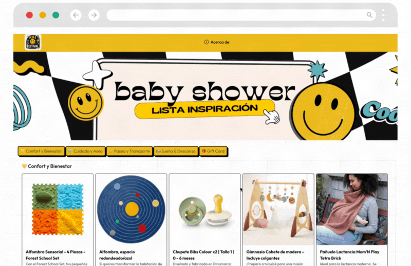 ¿Qué pasa si yo quiero elegir productos de diferentes tiendas? ¿Y si uno está en Amazon, otro en Falabella y otro en una tienda independiente? Me vi forzada a crear varias listas de regalos baby shower, una por cada tienda. Una pesadilla logística tanto para mí como para mis invitados.
