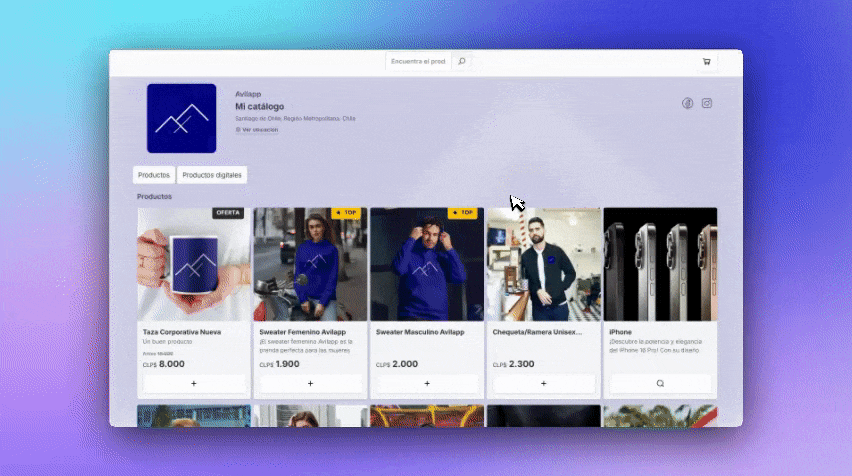 Una vista clara y ordenada de todo tu catálogo, lista para usar. Perfecta para negocios, con muchos productos o clientes que quieren explorar rápido.