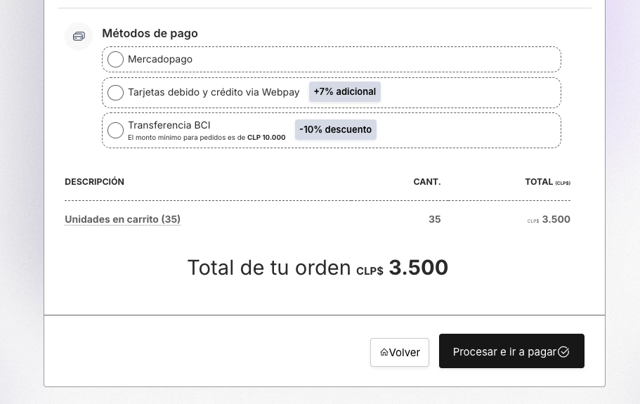 Antes de pagar, el cliente ve un resumen más claro y ordenado de su compra.