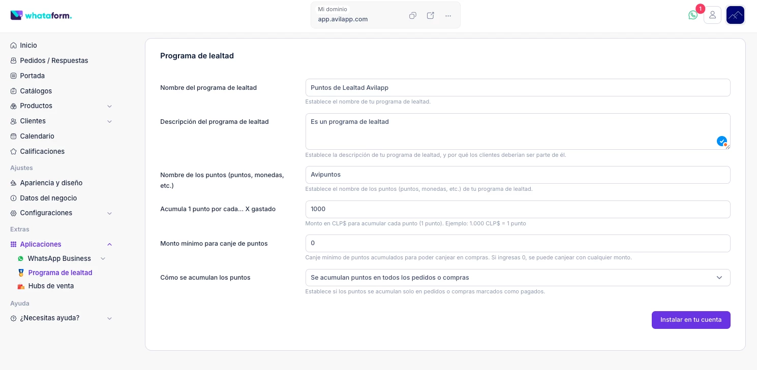 Todo configurado directamente desde Whataform.