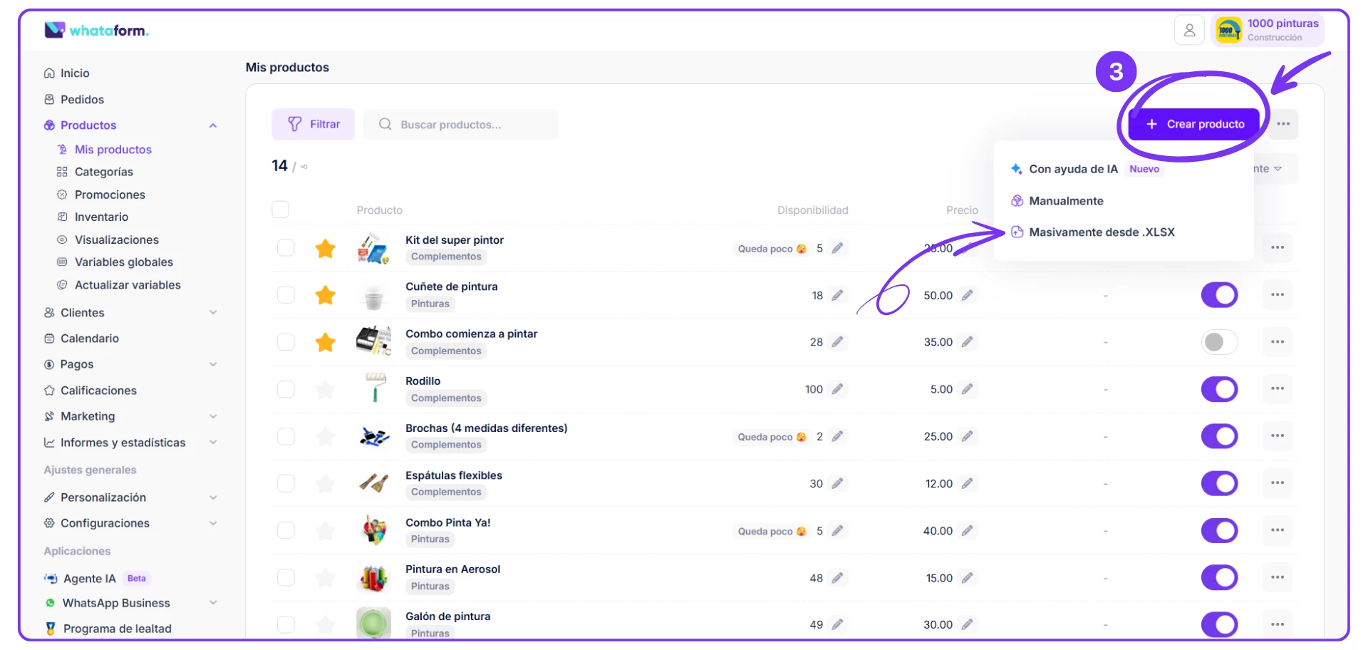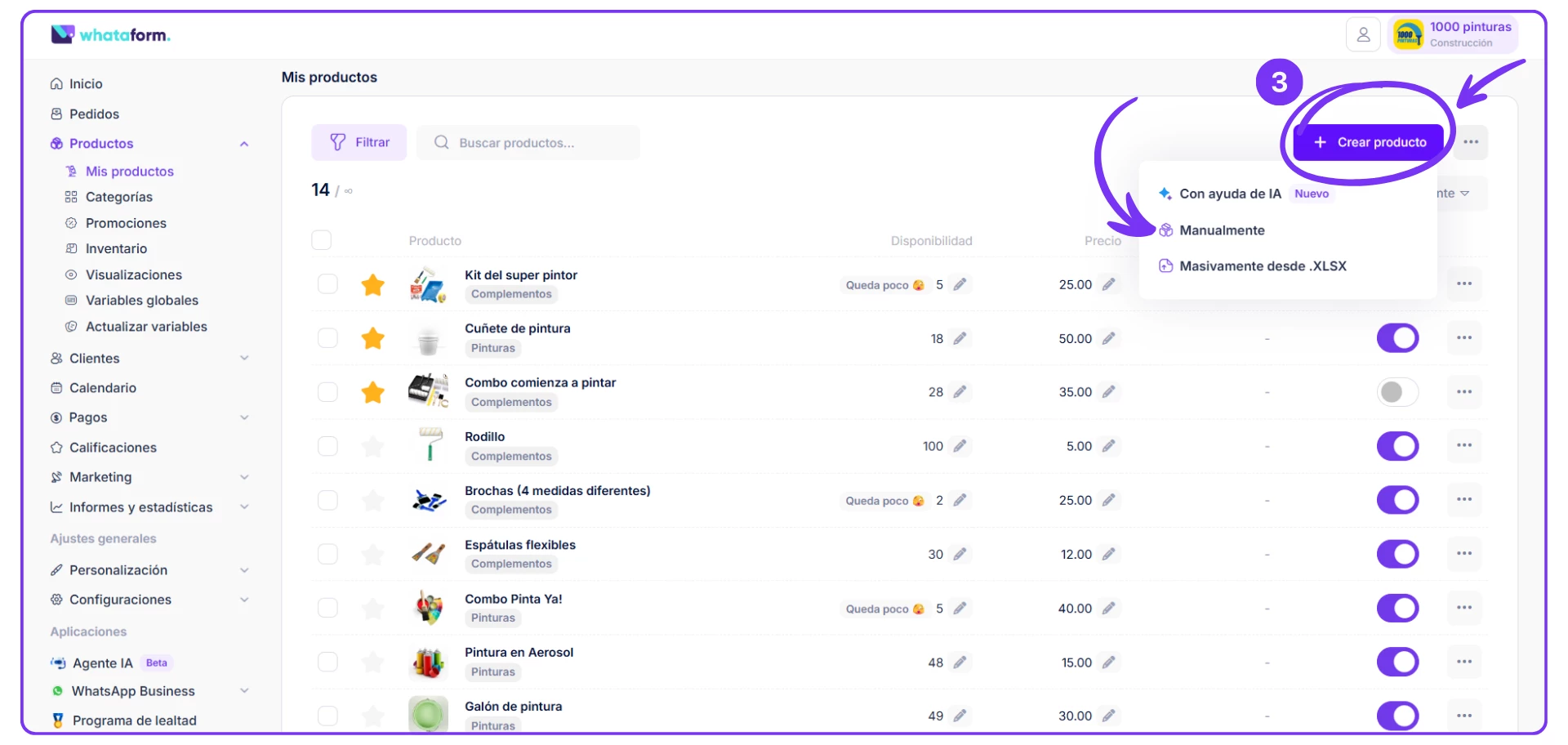 1. Puedes cargar producto por producto (manualmente).