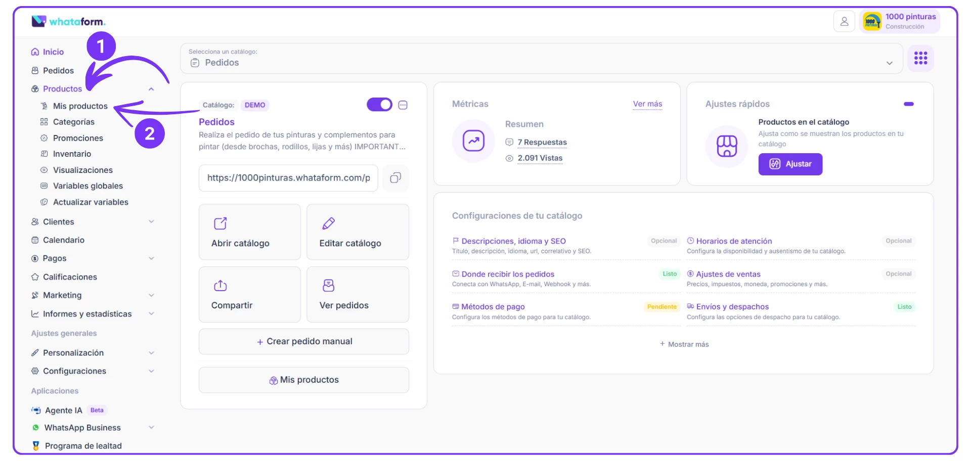 1. Ingresa a tu cuenta Whataform.