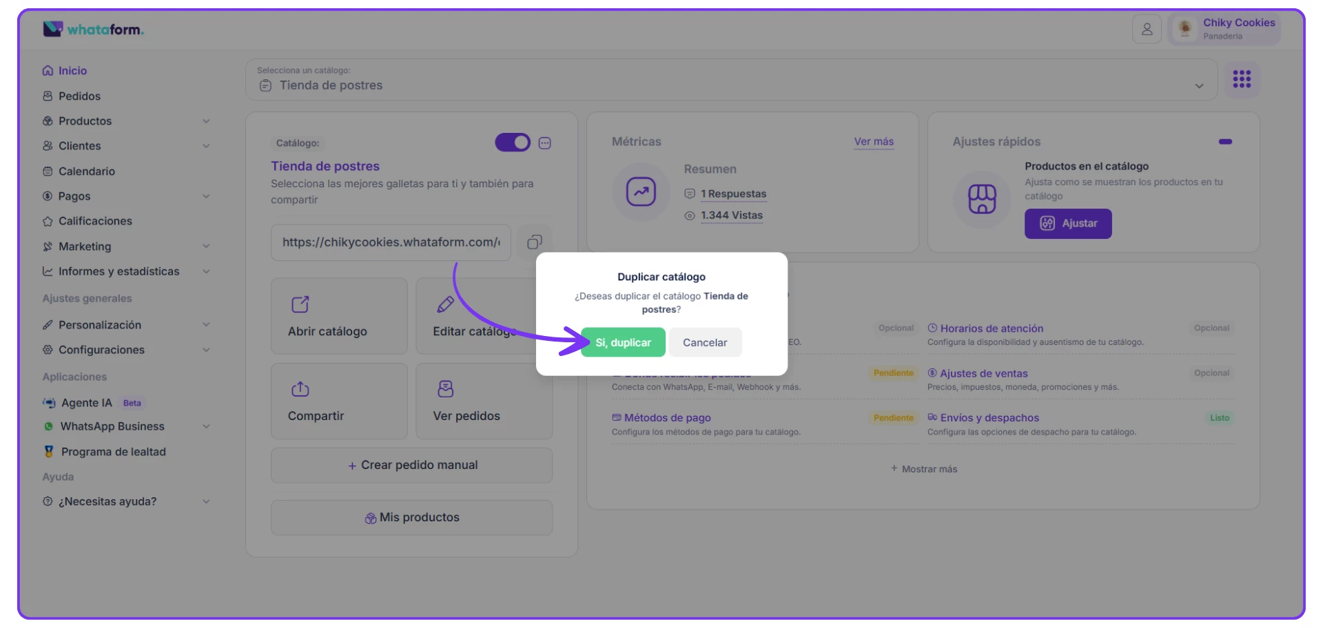 3. Te aparecerá una ventana, donde te preguntará si estás ¿Deseas duplicar el catálogo? Haces clic en sí, duplicar.