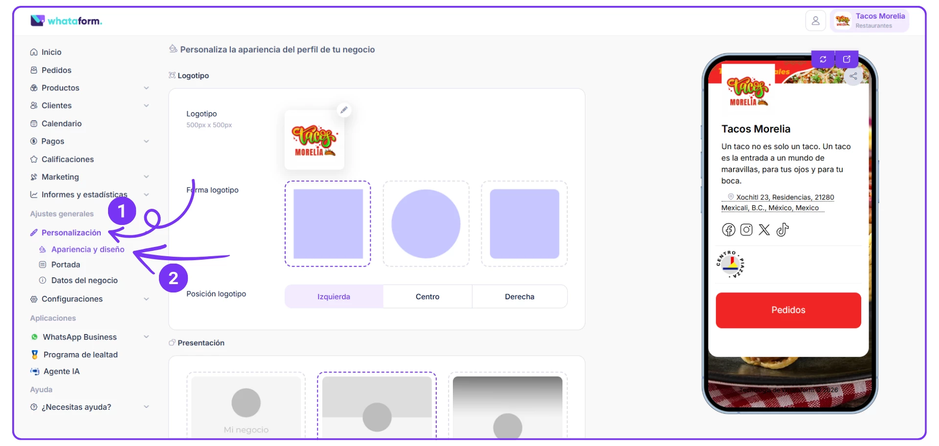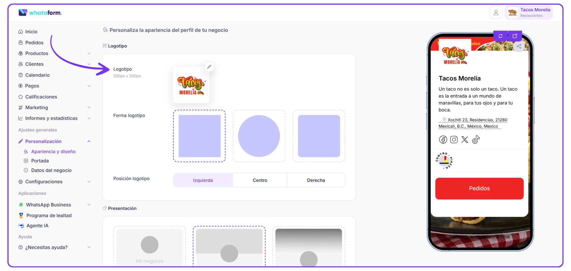 3. La imagen del logo del comercio es de 500px*500px