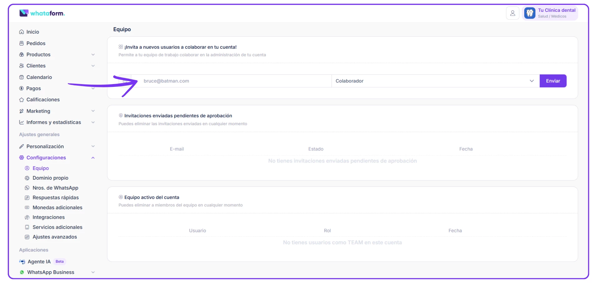 Invita a colaborar en tu sitio Whataform