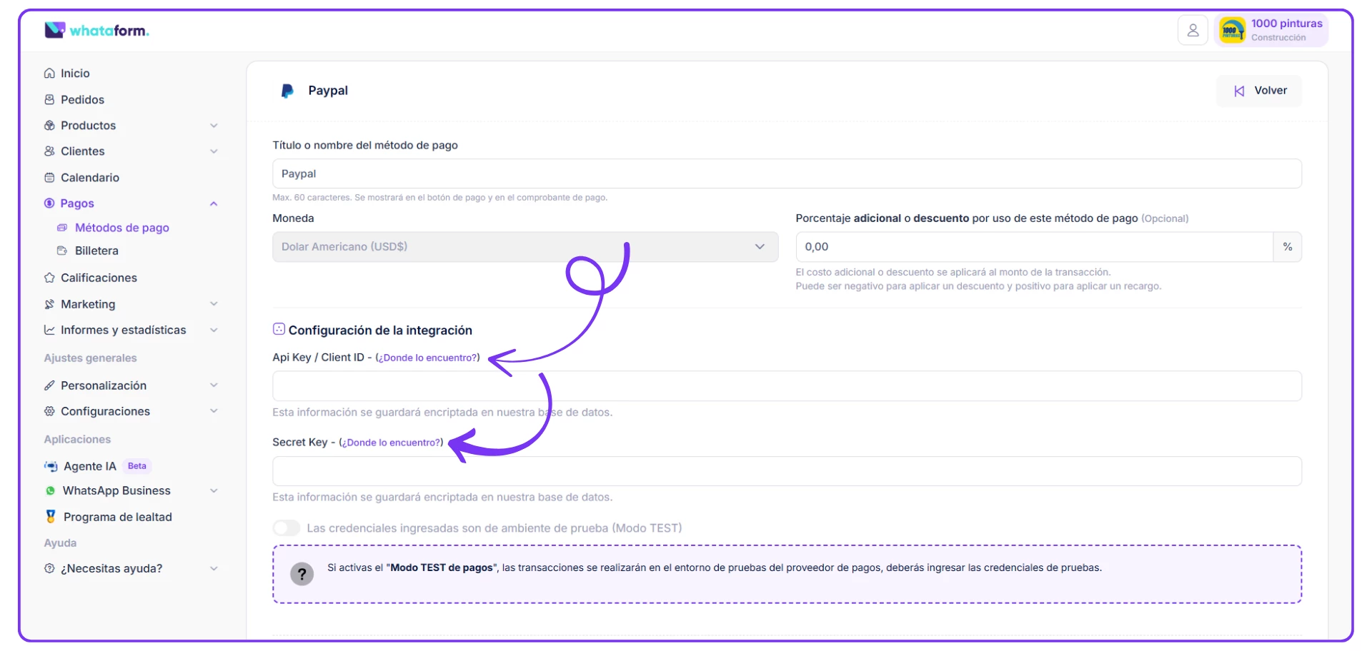 7) Y listo, ya estarás recibiendo pagos a través de PayPal desde tu página en Whataform.