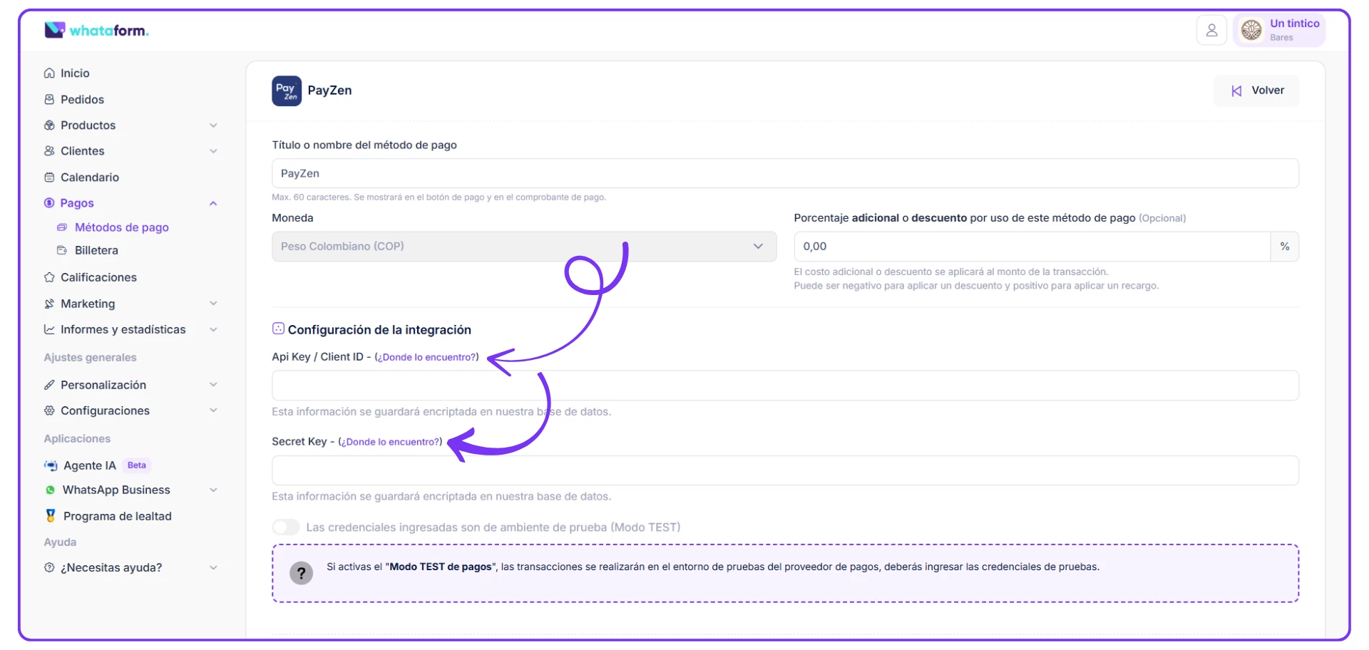- Secret Key Whataform = Contraseña producción PayZen